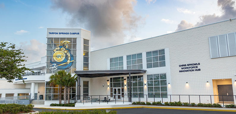 Spread over 80 acres of rolling terrain, the Tarpon Springs Campus reflects the community's Greek heritage in its architectural style. The campus features an amphitheater with a natural setting for cultural events and buildings adorned with Greek letters. Opened in 1975, the campus is home to the Leepa-Rattner Museum of Art and the Chris Sprowls Workforce Innovation Hub.